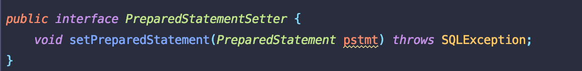 - 이때 인자는 쿼리문과 statement를 추상화 시킨 PreparedStatementSetter를 받아온다.