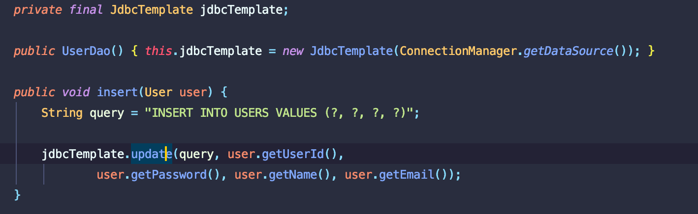 - JDBC Template 메소드를 활용해 쿼리문 처리