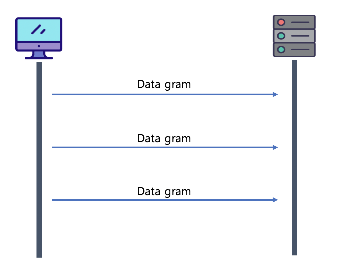 - TCP처럼 체크를 하지 않고 클라이언트에서 패킷을 바로 보냄
