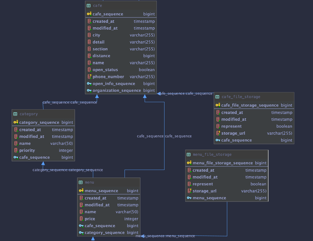 FOREIGN KEY (cafe_sequence)